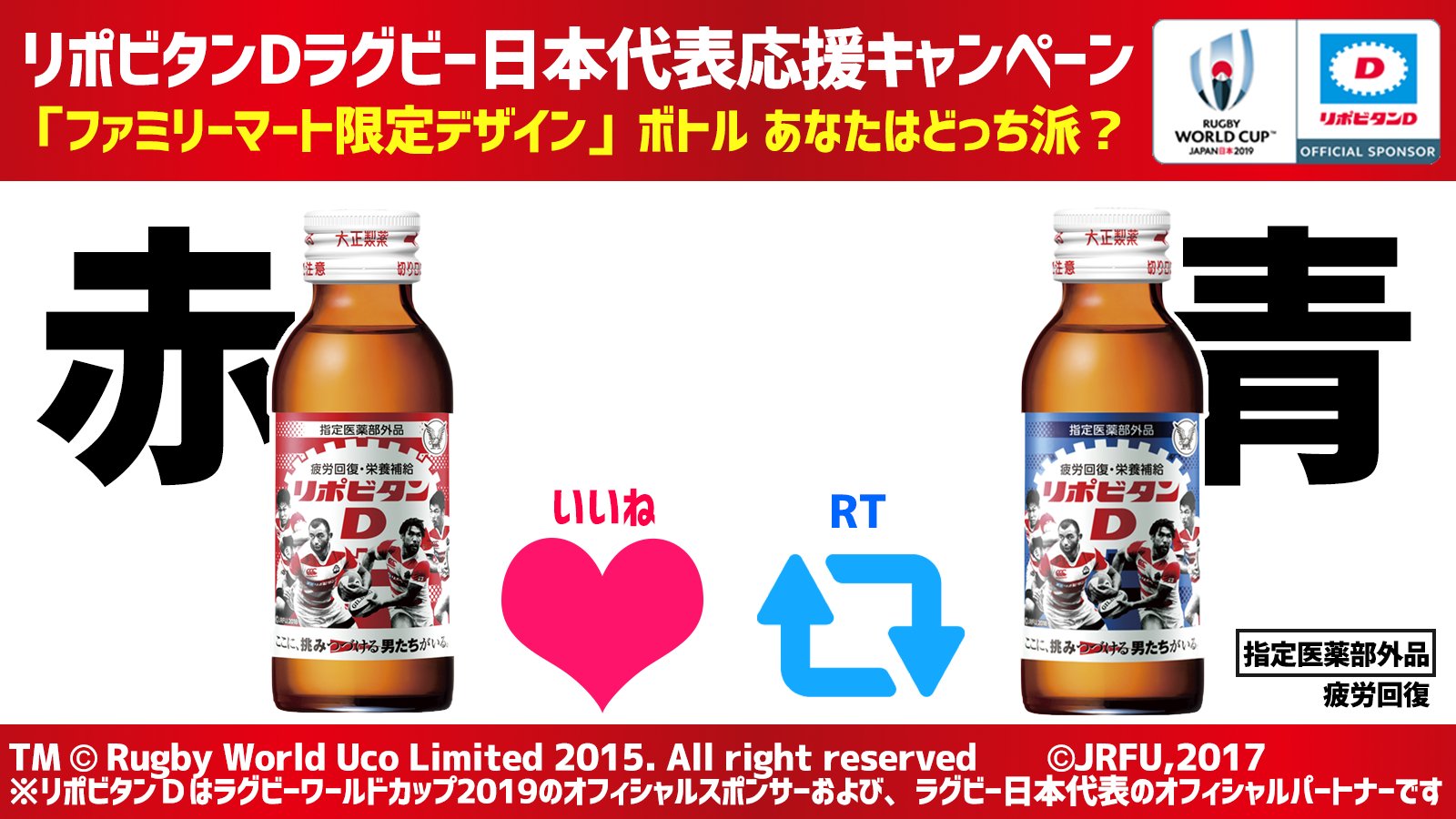 ファミリーマート リポビタンd Presents ラグビー日本代表応援キャンペーン ファミマ限定 リポビタンd ラグビー選手ボトル 発売中 あなたはどっち派 このキャンペーンは ラグビーワールドカップ 19 と ラグビー日本代表 を応援している